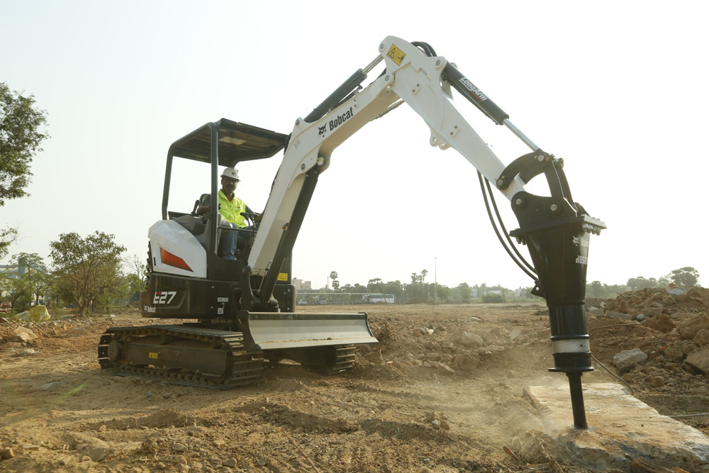 E27 Compact Excavator with a conventional tail swing for maximizing performance